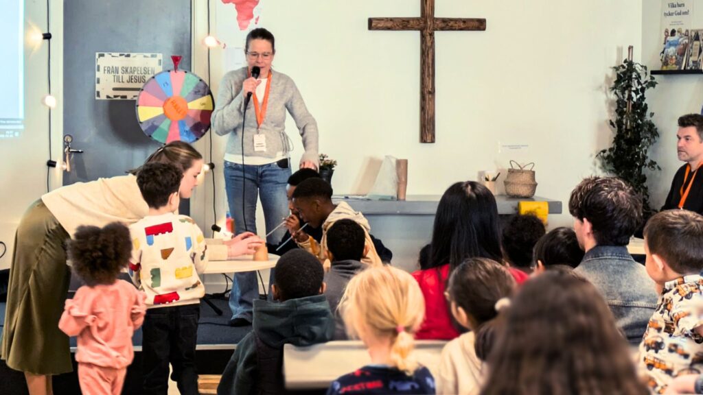 Vi vill att alla åldrar ska känna sig hemma i församlingen! Veckans höjdpunkt är söndagsgudstjänsten, då vi också firar Barnens gudstjänst. Den kan se lite olika ut, men vi ber alltid, sjunger och läser ur Bibeln. Det finns också tid för fika, pyssel, pingis och samtal.